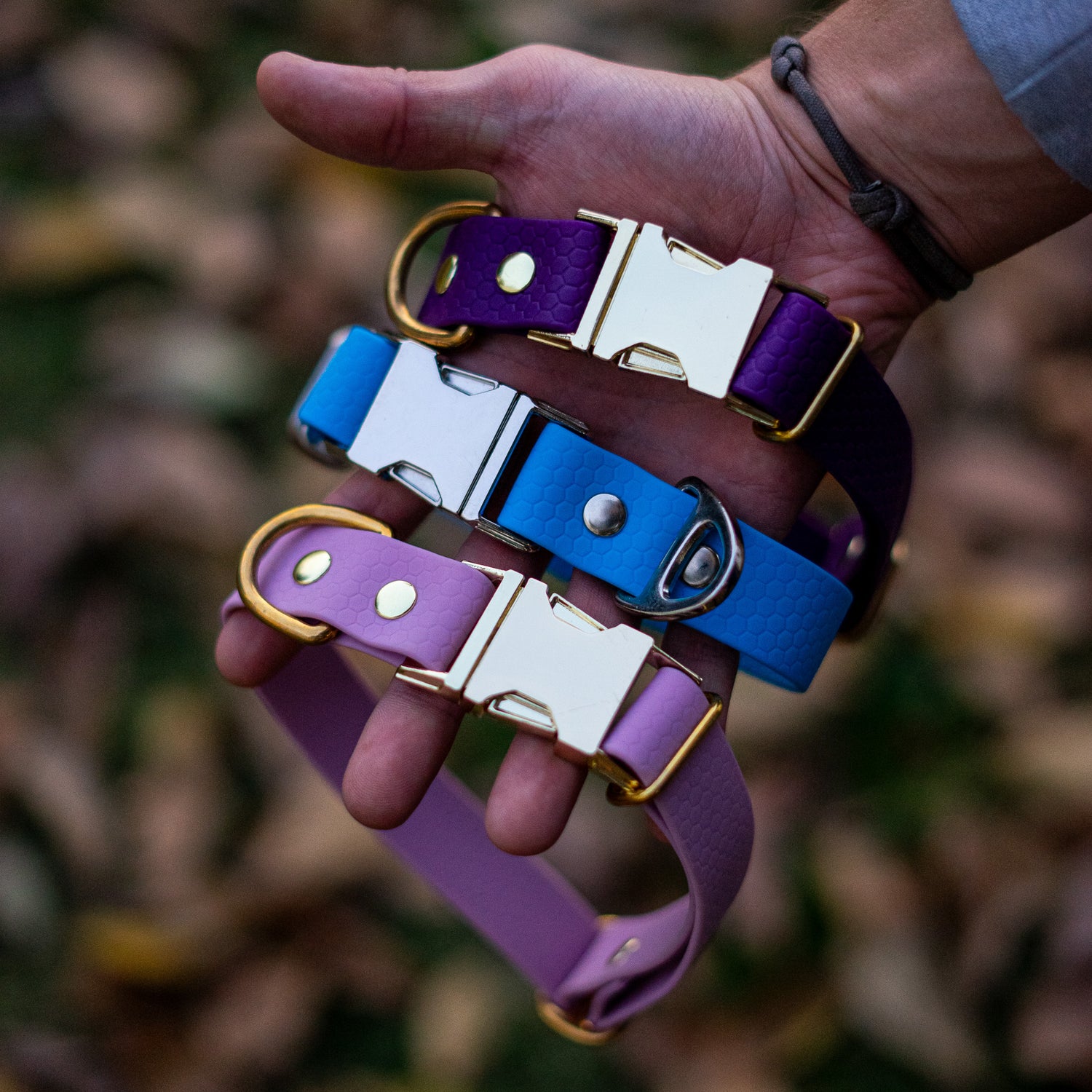 Durable and stylish, our dog collars feature tough waterproof webbing and sleek metal hardware for lasting strength and fashionable functionality.
